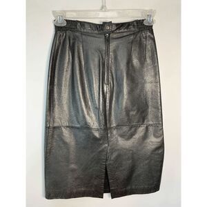 Diversity Women's Knee Length Genuine Leather Straight Skirt Black Size 6
