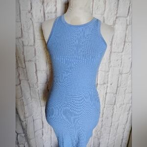 Stylish blue ribbed knit dress. Sleeveless design for a chic look.size small