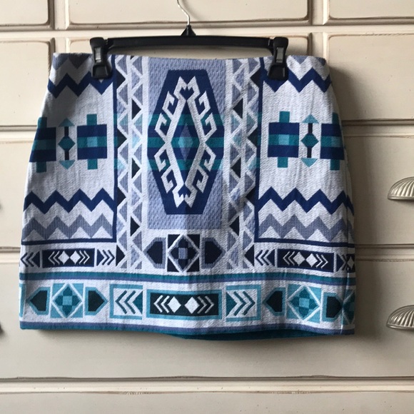 Aztec print blue mini skirt. Never been worn!