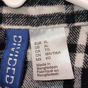 Divided By H&M Buffalo Check Flannel Casual Button Up Shirt Mens Size XL Black/White