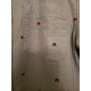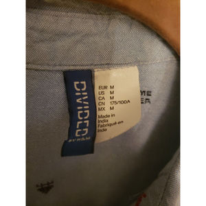 Pre-Owned Divided By H&M Mens Game Over Video Game Button Up Long Sleeve Collared Shirt Size Medium. No rips or holes but has some discoloring near the right armpit that you can hardly see (see pics). Sold as is.