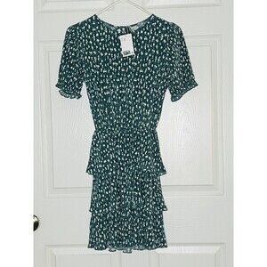 Divided By H&M Womens A Line Dress Green Floral Tired Layer Keyhole XS New