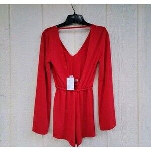 divided by H&M bell sleeve cut out back red romper women's xxs.