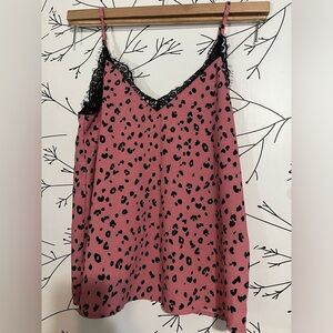 Divided Cheetah Tank Top lace trim, spaghetti strap size 6 pink