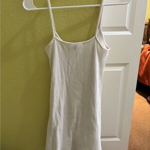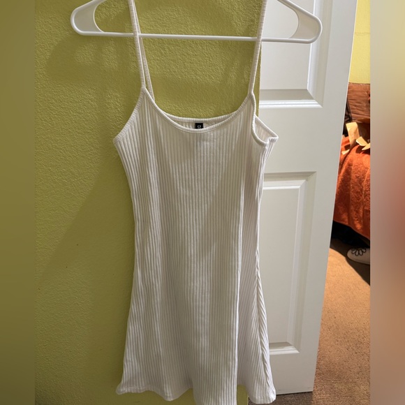 Chic cream ribbed mini dress. Ideal for casual wear.