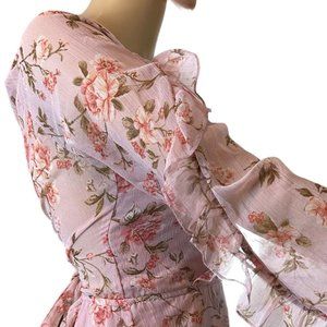 Divided Floral Bohemian Dress Medium M Baby Pink Back-Laced Lined Layered Ruffle