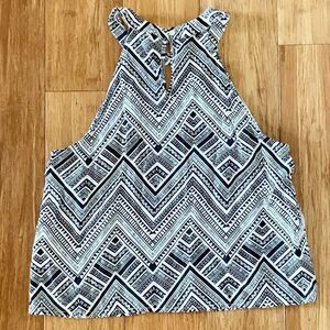 Chic sleeveless top with a modern black & white geometric print. Lightweight and perfect for layering or wearing on its own.
