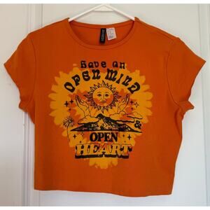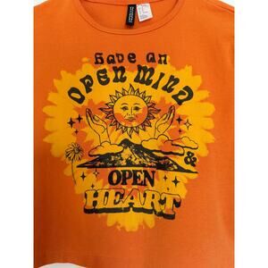 Divided Graphic Crop T-Shirt "Have an Open Mind and Open Heart"