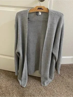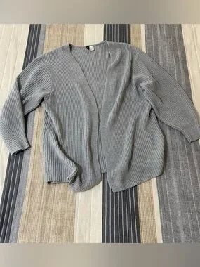Soft ribbed knit open-front cardigan by Divided. Relaxed drape for easy layering. Long sleeves and a simple neckline. Neutral gray tone pairs with many outfits.