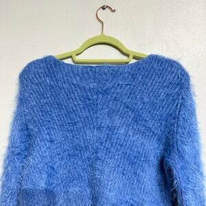 Divided H&M Blue Fuzzy V-Neck Crop Knit Sweater Sz M