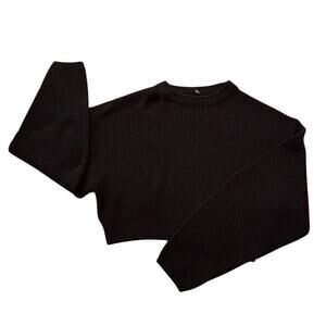 Divided H&M Brand Black Crewneck Cropped Long Sleeve Sweater in Women's Size XS