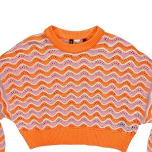 - Description: Divided H&M Crop Sweater Women S Orange Pink Chunky Knit Balloon Sleeve Oversize