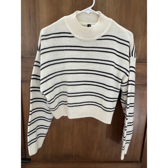 Divided H&M Cropped Crew Neck Sweater Cream Black Striped Size XS