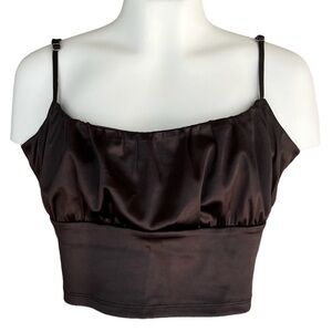 Cropped top in jersey with a sheen. Narrow, adjustable shoulder straps and pleats over bust for a draped effect.