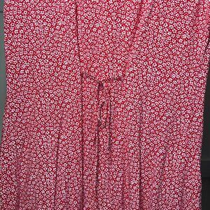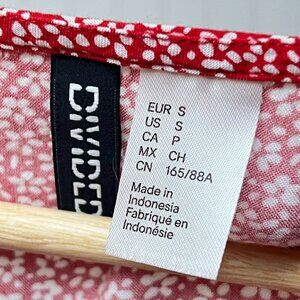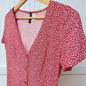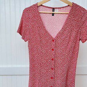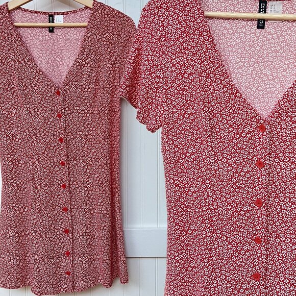 Divided H&M Ditsy Floral Red White Tie Back Shift Dress Button Down Small