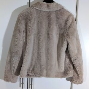 Divided H&M Furry Fux jacket, Beige cream snap closure