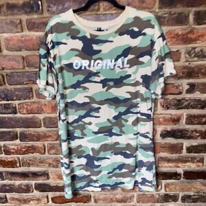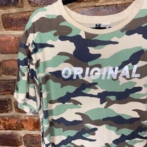 Divided H&M Green Beige Camo Camouflage Short Sleeve T-Shirt Dress Women's Size 10