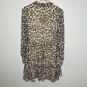 Divided H&M Leopard Print Dress Women's Fit and Flare Tan Size 4 Long Sleeve Tan