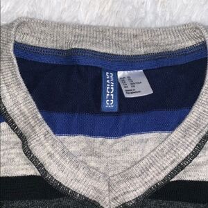 Divided H&M Men’s XL Black Blue Striped V-Neck Pullover Sweater Casual Classic