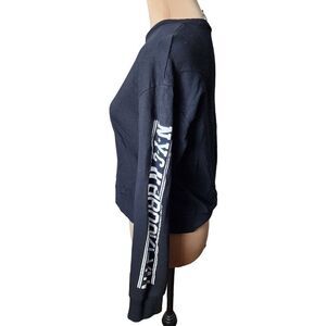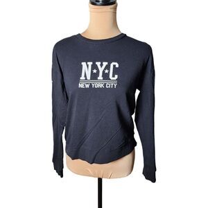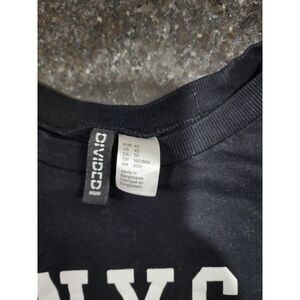Divided H&M NYC Long Sleeve Black Cotton T-Shirt in Women's XS. N.Y.C Logo printed in front and down the arms of the shirt. No rips stains or tears detected throughout the garment. See photos for condition and measurements. All measurements taken while laying flat. Double check your measurements against the measurement photos please.