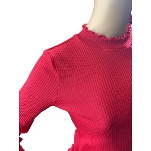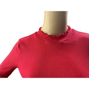 Divided H&M Red Ribbed Ruffled Mock Neck Long Sleeve Cotton Top Size Small