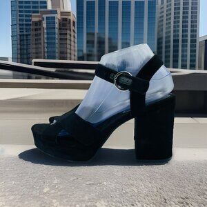 Divided H&M Shoes Womens Size 8 Black Heels Sandals Ankle Strap Buckle Strappy
