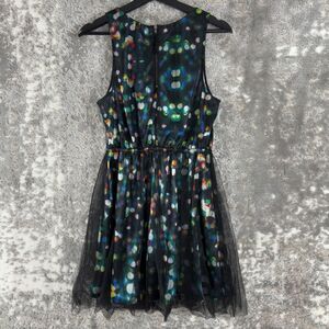 Divided H&M Sz 10 Tulle Mesh Colorful Polka Dot Sleeveless Mini Flare Dress Zip
