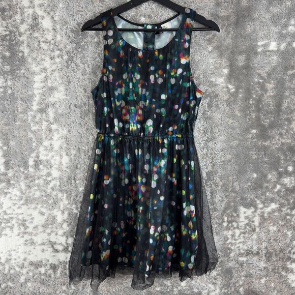 Divided H&M Sz 10 Tulle Mesh Colorful Polka Dot Sleeveless Mini Flare Dress Zip
