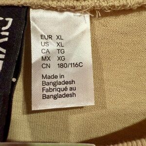 Divided H&M Women T Shirt Dress 100% Cotton Shoulder Pads Beige Dress Size XL
