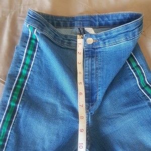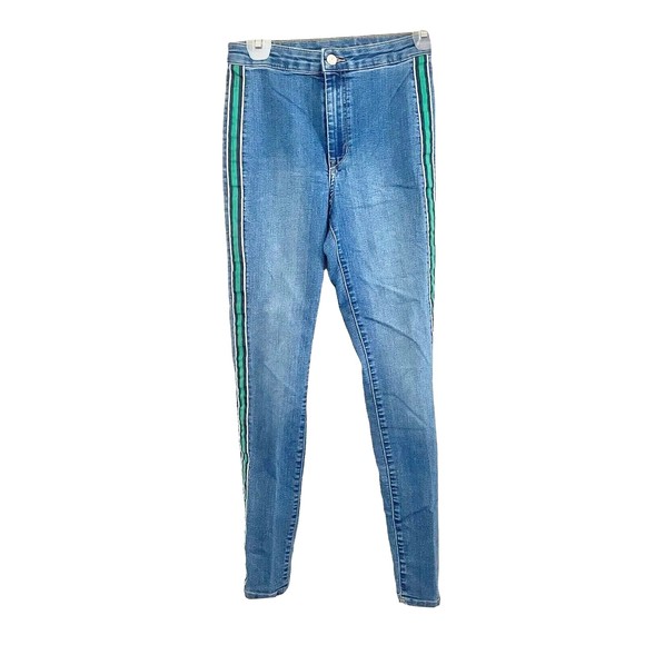 Divided H&M Womens Jeans Denim Pants Size 4 Side Striped Panel Mid Rise Waist Blue Baddie