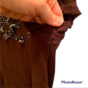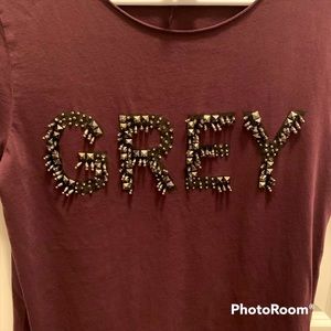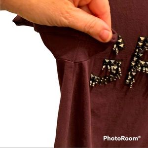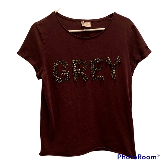 Divided H&M tee. Maroon with beaded detail “ GREY”. Size small
