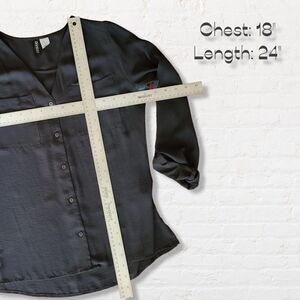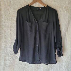 Divided H&M Black Blouse Lightweight Button Up Roll Tab Sleeve Size 2.