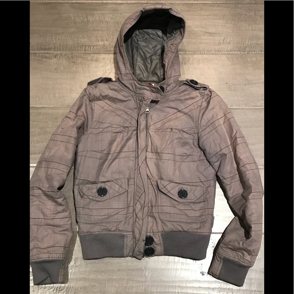 Divided Jacket in size 2. Grey plaid. Small stain on lower back corner (see picture),