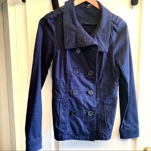 Royal/navy blue cotton jacket, like-new condition. Fits like a small or medium size. Brand size 8 but fits as standard small. Brand: Divided