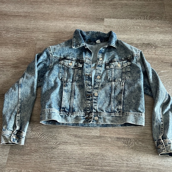 Divided acid wash cropped jean jacket.