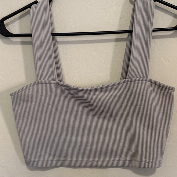 Light gray ribbed top with a sleek design. Ideal for everyday style.