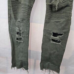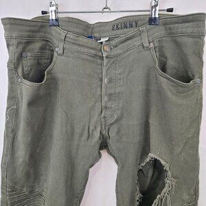 Divided Mens Distressed Ripped Skinny Fit Jeans Size 36x34 Olive Green Pants