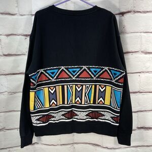 Divided Mens Sweatshirt L Pullover Black Geometric Print Multicolor Crew Neck