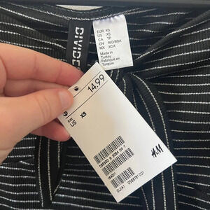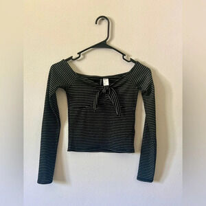 Divided (H&M brand) long sleeve crop top with off the shoulder neckline, tie detail, and silver sparkle stripes.