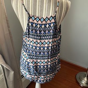 Divided by H&M Razorback button down tank top. Spaghetti straps. Button down front. Aztec print in shades of blue, purple and pink. US size 12.