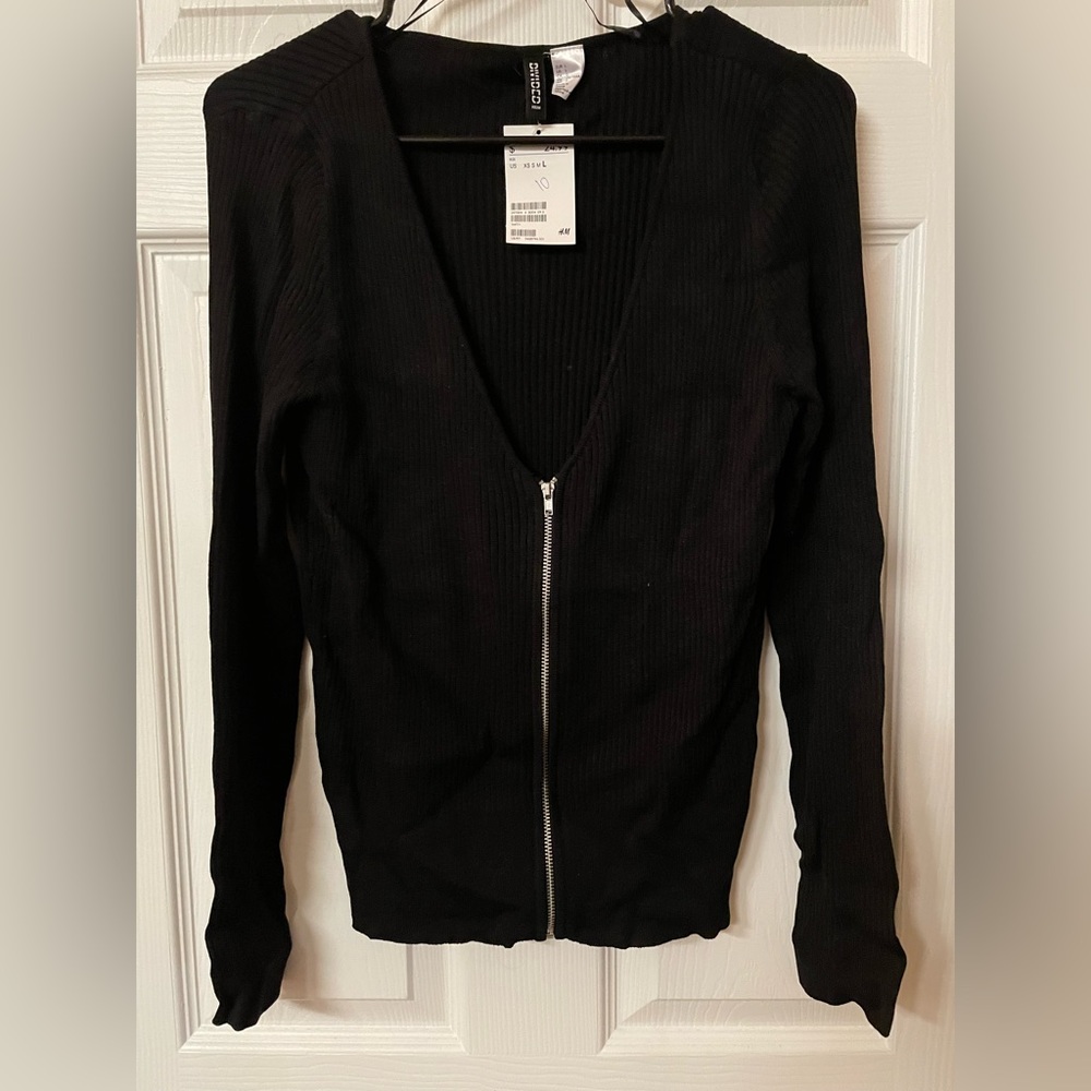 Divided (H&M brand) black ribbed top, v-neck with zipper