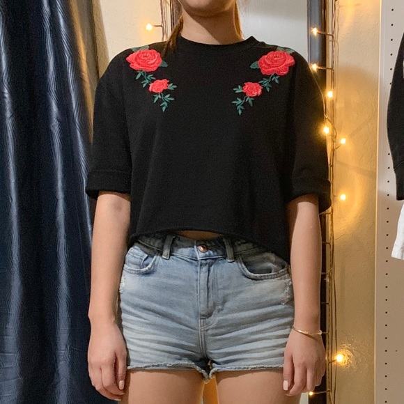 Divided Roses Crop Tops Tee