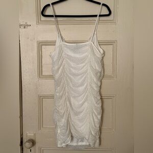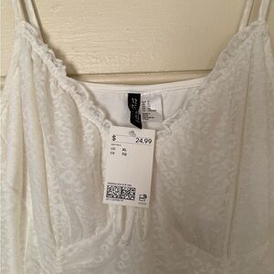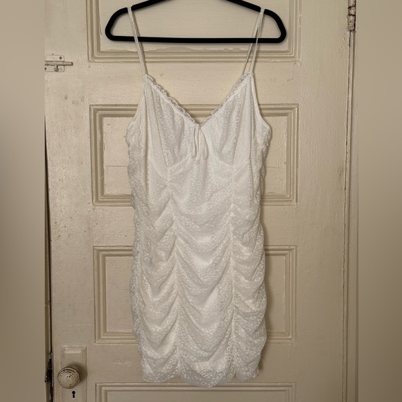 Chic ivory lace dress with delicate spaghetti straps. Hidden leopard detailing throughout. Ideal for a night out on the town. Brand new, never worn. Missed the return window. Have this in brown and love it.