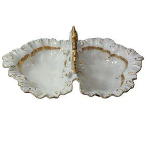 Divided Serving Dish w/ Center Handle Stamped #7608 Bright Gold Trim