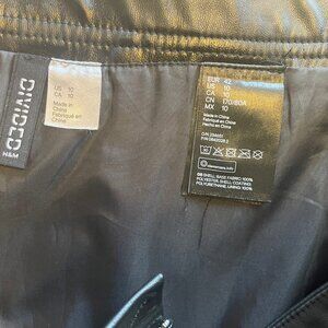 Faux Leather Ruffle Skirt Zips up back with black button at top for closure. Size: 10