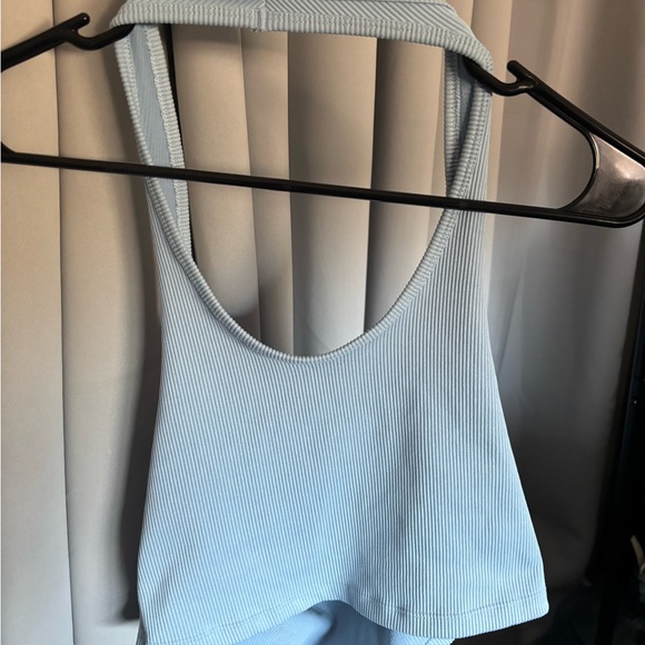Chic sky blue ribbed top. Ideal for everyday wear.