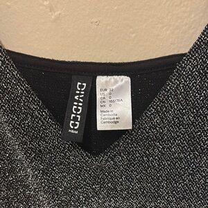 Chic mini dress with a shimmering finish. Features a flattering V-neck and thin straps. Ideal for a night out.