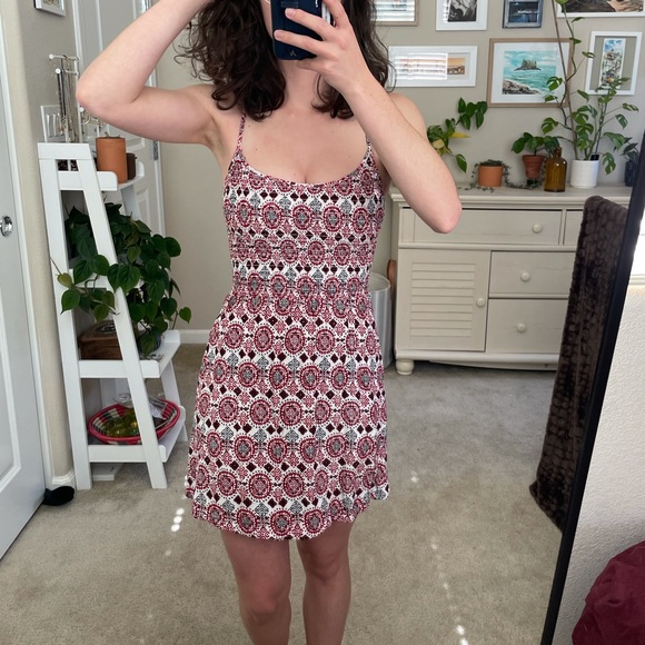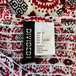 Color: Red and white Aztec print