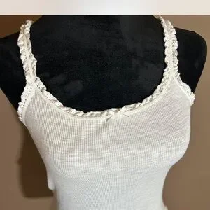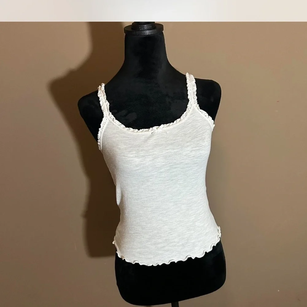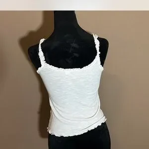 Chic white camisole with delicate ruffles. Perfect for layering or wearing alone. Soft and comfortable fabric.