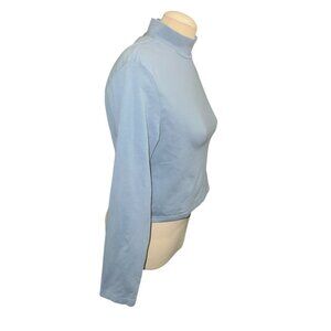 Divided Womens Light Blue Long-Sleeve Mock Neck Crop Top Sz XL Womens Blue Casua